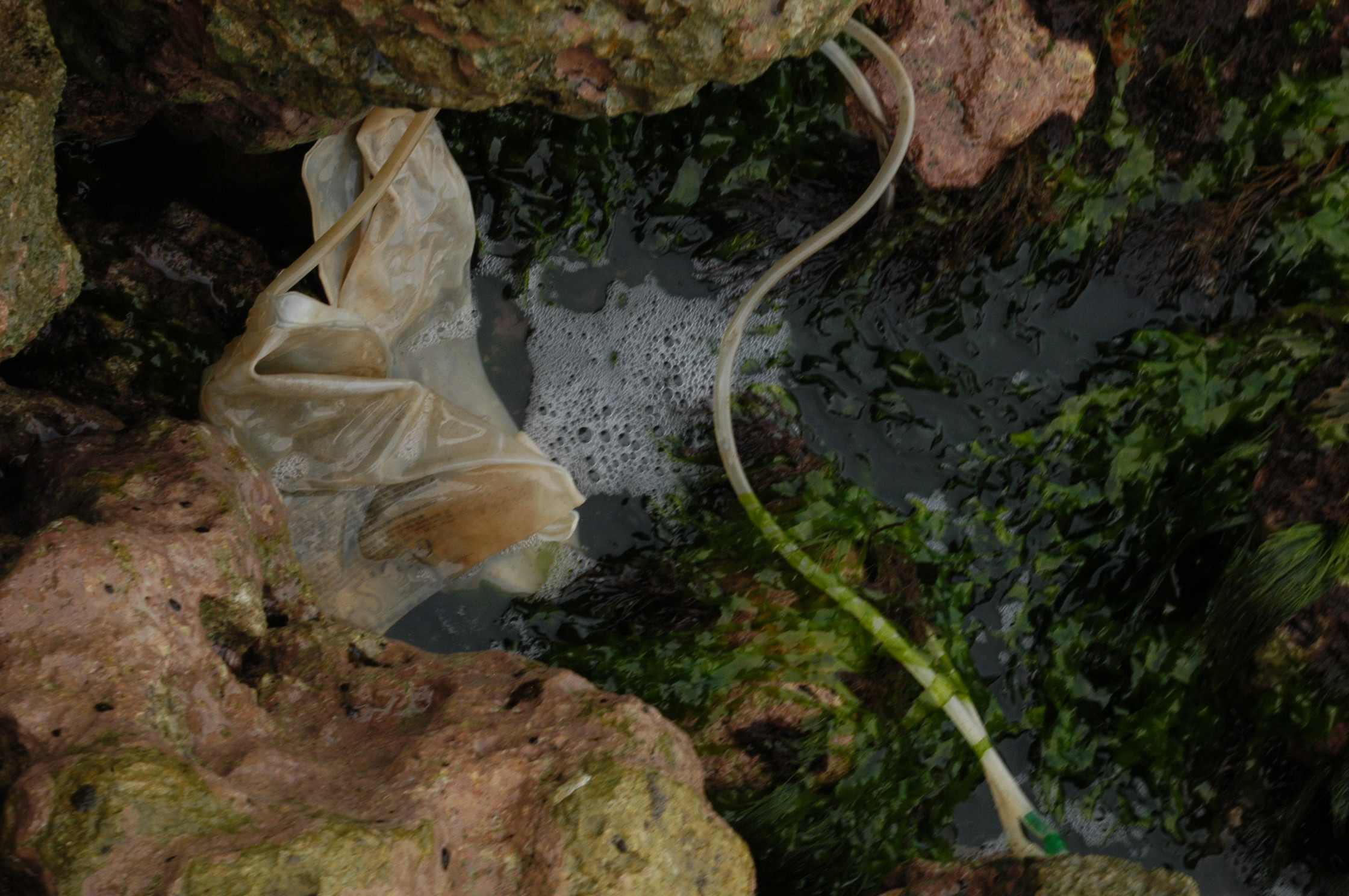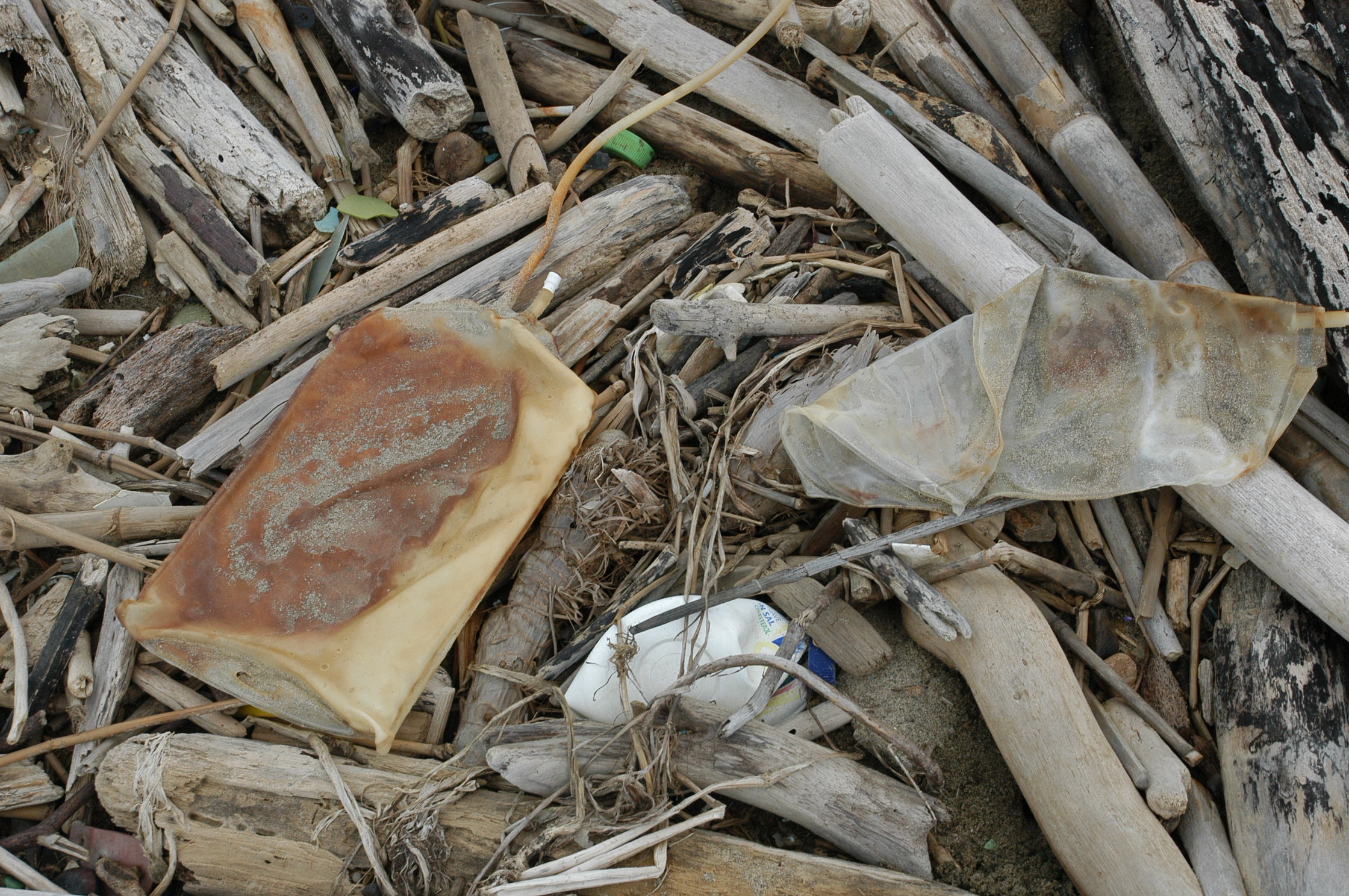 No solo recoge chancletas, troncos y botellas de detergente. “Siempre vienen inyecciones y bolsas médicas de toda clase. Las arroja el Río”, dice, y eso que no se ha dado cuenta de que a pocos metros está una prueba que respalda sus palabras. “Diálisis”, se alcanza a leer en una bolsa de plástico que tiene dentro una mancha carmesí opaca, casi marrón, como las olas que la zarandean entre las piedras. Está en un costado del montículo de brasieres rotos, latas de sardinas y otros desperdicios apilados en el espolón número dos.