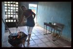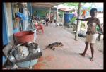 La leña arde sobre láminas de zinc partidas. De las paredes cuelgan cables y varillas; emergen entre costras de moho. Cerdos, patos, gallinas, corren por todos lados, entre niños desnudos. Dejan a su paso huellas de porquería sobre porquería. Manchas que ni se notan sobre las cordilleras de escombros, hollín, neveras roñosas y bolsas de basura.