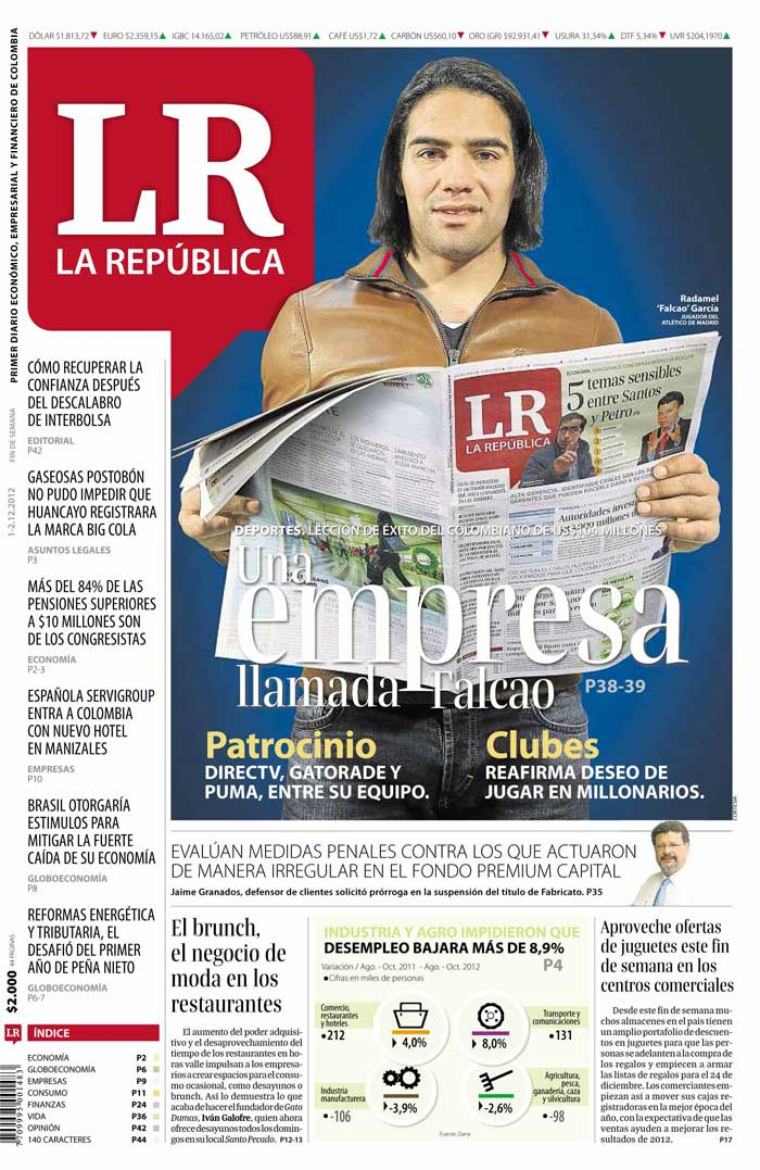 La historia del fútbol colombiano está llena de estrellas fugaces, que se apagan al instante que rozan la cumbre internacional. No ha sido el caso de Falcao. Su éxito empresarial va de la mano de su constancia en el desempeño futbolístico. Con River Plate convirtió 45 goles y fue campeón de Argentina, con Porto marcó 72 veces y ganó la liga portuguesa, la Europa League y la Copa. Y con el Atlético lleva 50 tantos y todos los títulos que no son acaparados por el Real Madrid y el Barcelona. Incluso con la selección ha conseguido 15 goles, por lo que se encuentra tan solo a 5 de ser el máximo anotador de la historia de Colombia.
