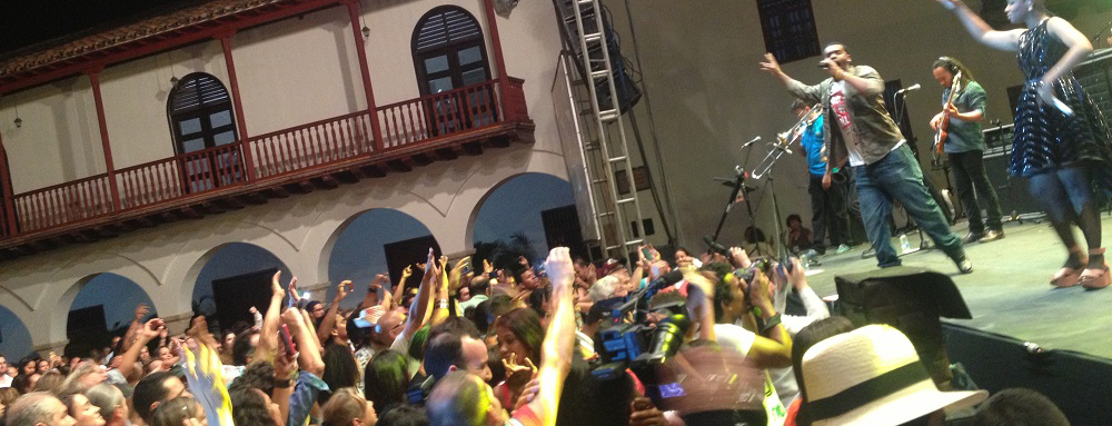 Tostao y Goyo lo hicieron alcanzar su máximo punto de ebullición, bajo una premisa con evocaciones joearroyísticas “oye men, cógele el ritmo a la negra”. Los cantantes de ChocQuibTown sacaron de sus sillas a los miles que llenaron la plaza de la Aduana. Desafiaron la comodidad y solemnidad de una que otra guayabera, y pusieron a bailar a todos allí en los adoquines, en medio de balcones de madera y arcos de los tiempos de la colonia, en una noche de cielo despejado y brisa mecepalmeras neutralizadora de sudor.