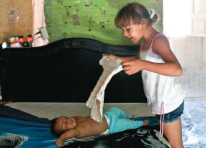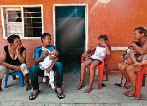 —¡Ya sabía que iba a seguir esto! —les grita a Libinton y Stefany la tía que estaba alimentando a Milan, Madelein. Una adolescente de 14 años, de súbito ruborizada y sonriente. De un brinco se levanta de la mecedora de varillas oxidadas en el andén-terraza, y se hace un moño.