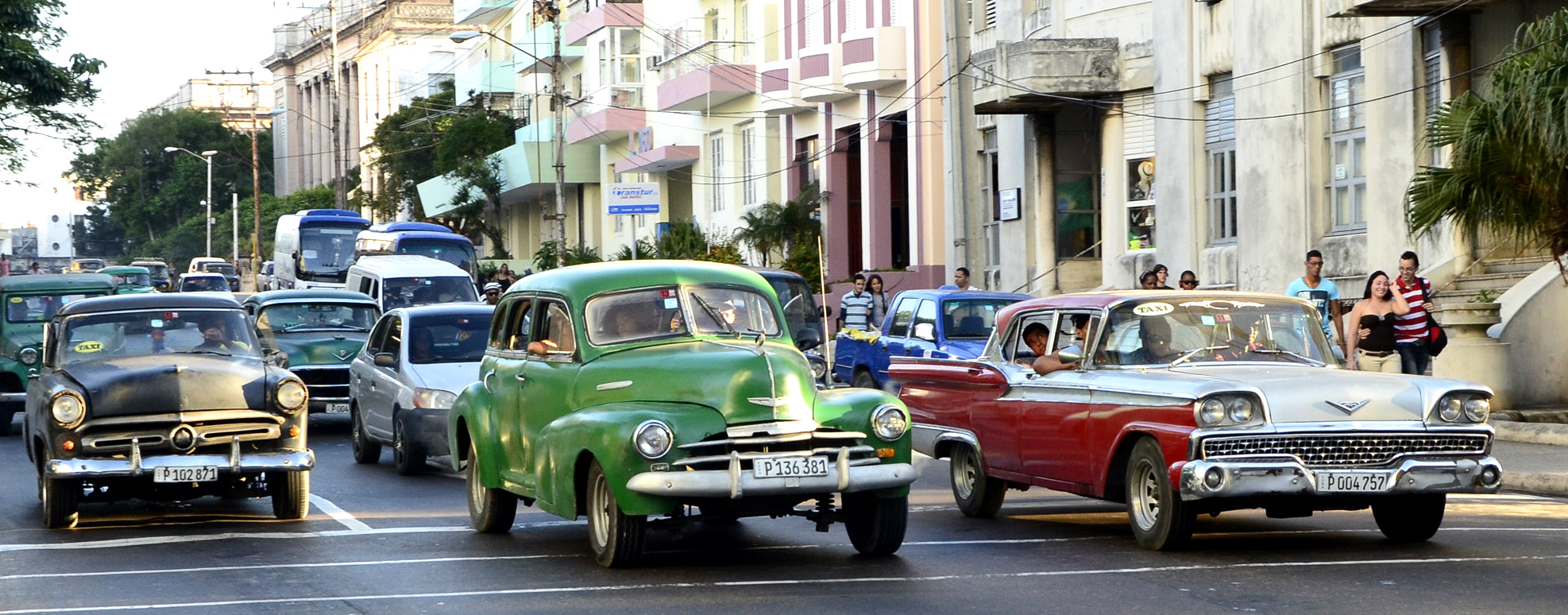“Vamos a cambiar para mejorar. Vamos a progresar, a mejorar en todos los sentidos. No es que esté en malas condiciones, porque el país nos resguarda en todo. Pero puede mejorar”, añade Thalía, que tal como confesó Obama en su discurso, nació cuando ya el bloqueo estaba en marcha. A su alrededor, pasan carros de viejas curvas infladas y sinuosas. Acá conservan su resplandor. Los Cadillac, los Ford, los Chevrolet y otros clásicos americanos de metal duro, pueblan autopistas anchas rodeadas por largas palmeras que apenas le acarician los tobillos a edificios altos, de balcones y arcos modernos, vestidos con una romántica capa de polvo y humedad. Un presente americanizado por el pasado. Los coronan avisos como “Hasta la victoria siempre”, “Revolución es construir”, etc, instalados en las azoteas. Banderas cubanas ondean desde lo alto por doquier. Esa que tanto se parece a la de Estados Unidos, pero con una sola estrella.