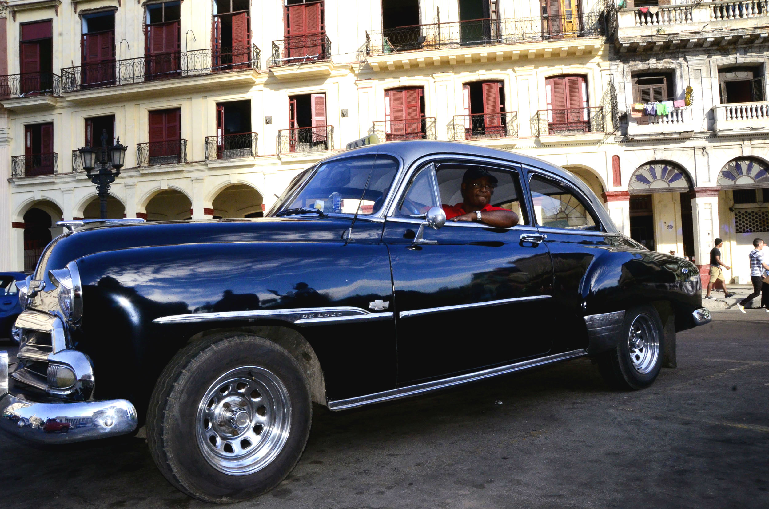 Roberto tiene 59 años y hace 20 compró el carro con el que hoy se gana la vida. Le instaló aire acondicionado: un ventilador de aspas verdes que le apunta a la cara. Es su segundo dueño. El propietario original fue un piloto de la armada estadounidense que se lo dio como regalo a su hija antes de la revolución. «Me costó 2.000 pesos nacionales. Serían unos 1.000 CUC hoy». Dice que en un día bueno puede ganar hasta 30 CUC. Pero hay días malos en que no hace ni 5.