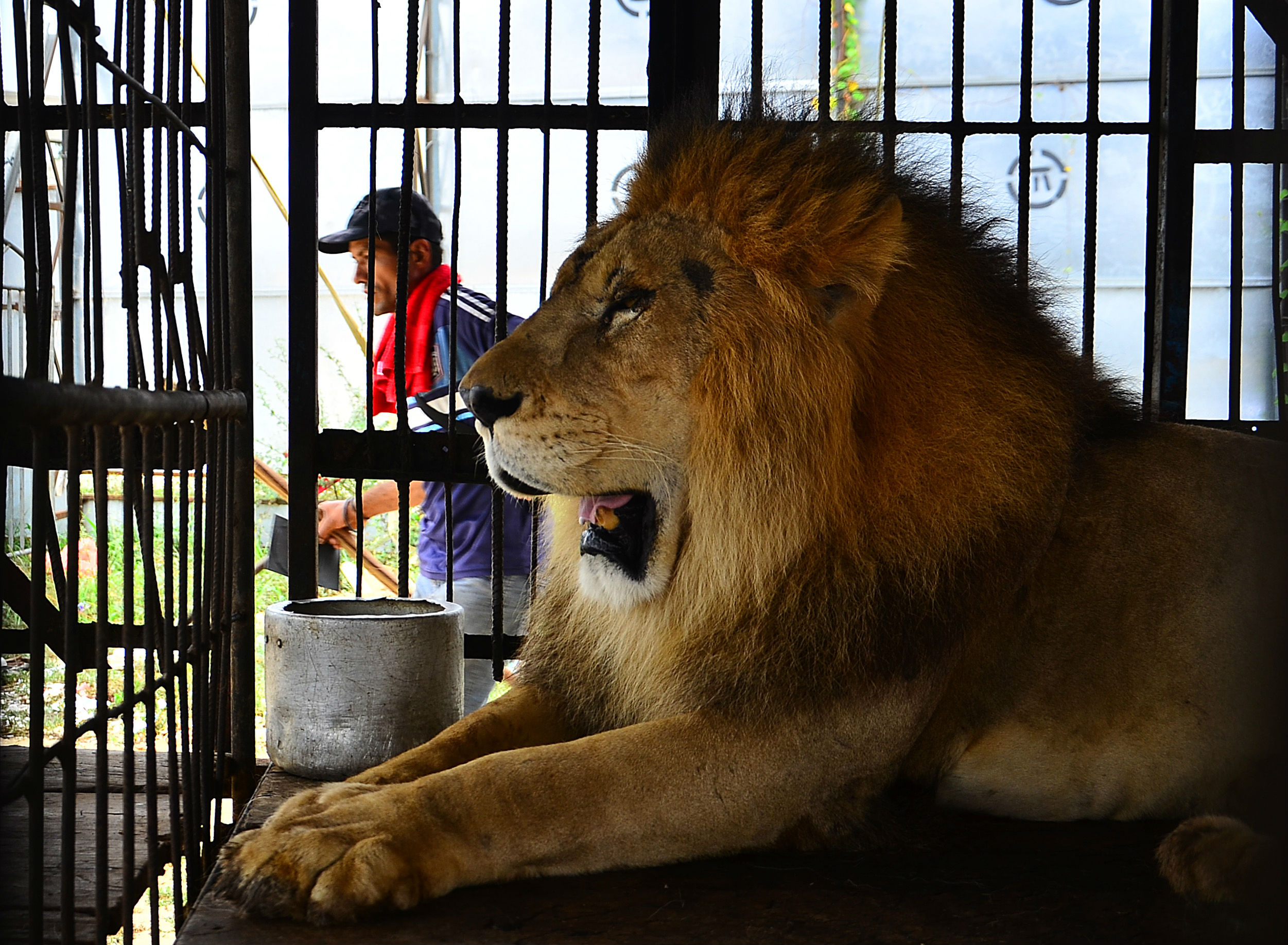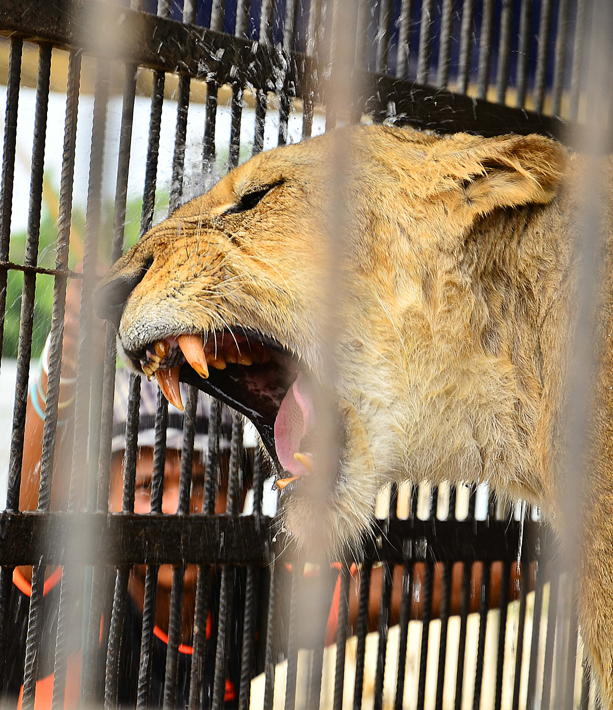 El circo Americano levantó su toldo blanquiazul el 28 de julio en un terreno desocupado a un lado de la vía Circunvalar, en el cordón periférico de Barranquilla. Antes había estado en municipios circundantes. A su llegada, su dueño tramitó la entrega de sus 10 leones a la autoridad ambiental del departamento, la Corporación Autónoma Regional del Atlántico. Los técnicos de la entidad tomaron la respectiva foto de registro pero se llevaron solo a los cuatro más jóvenes: Paquita, Pevel, Soacha y León XIII, que se llama así por el barrio cundiboyacense en el que nació y no por ser el número 13 de su familia. Promedian los tres años. Los otros seis, incluyendo a la madre de todos, se quedaron enjaulados a espera de que les definan su situación jurídica. Por el momento no hay a donde llevarlos, así que tienen que quedarse en su antigua casa, con el compromiso de no hacer parte del show.