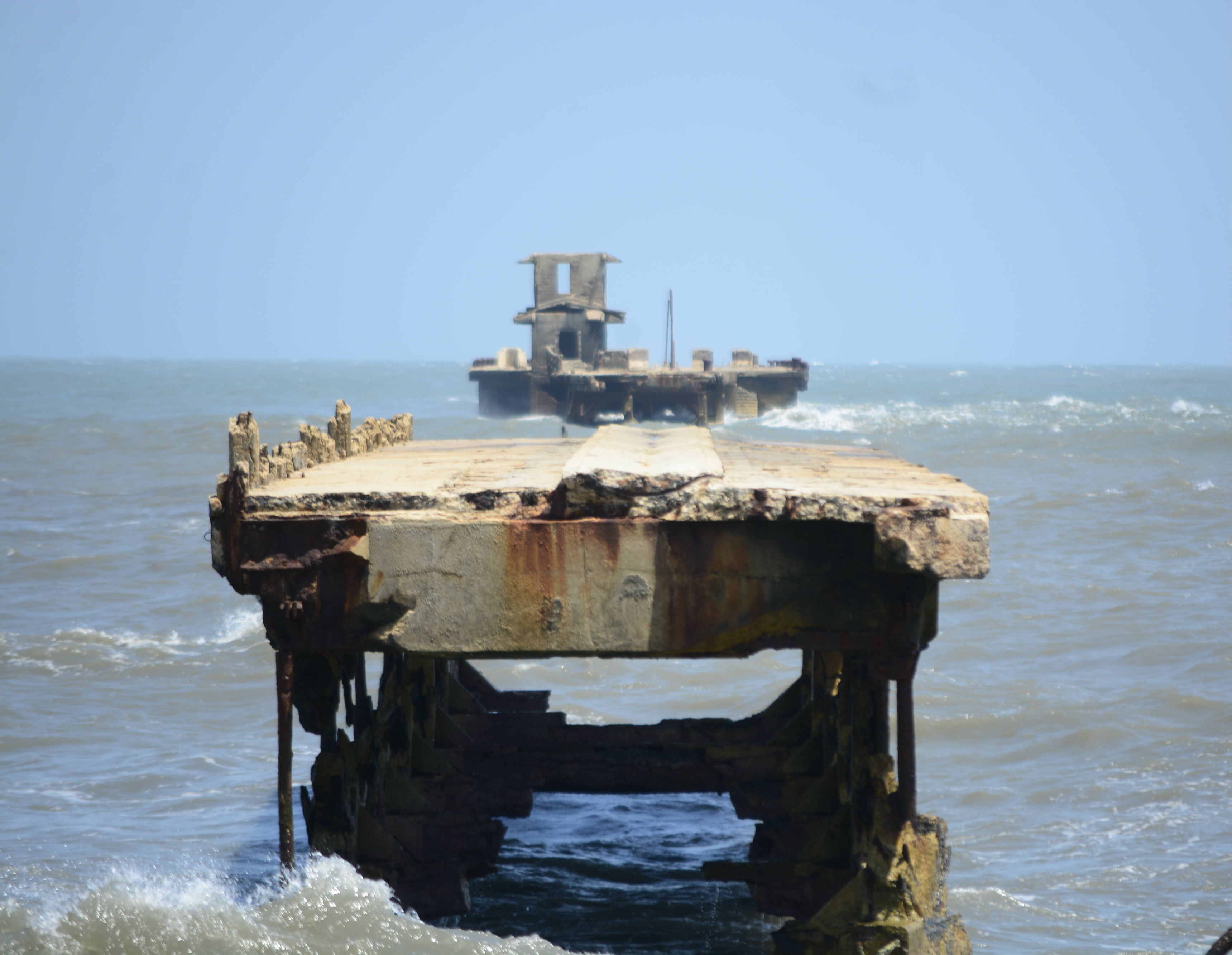 La ostrería el Titanic es una entre varias que le exprimen las últimas gotas de turismo a la entrada del cadáver del monumento. Están también La Fragata, El Galeón, Eli. La brisa marina arrastra el sonido de un acordeón enguayabado de mañana de jueves. Ya no hay anuncio de bienvenida. Pasa una parejita abrazada, que deja atrás la señal de prohibido el paso. Se ven unos 12 pescadores, como coágulos a lo largo de esa costra que se prolonga sobre el mar, y que el agua va arrancando pedazo a pedazo.