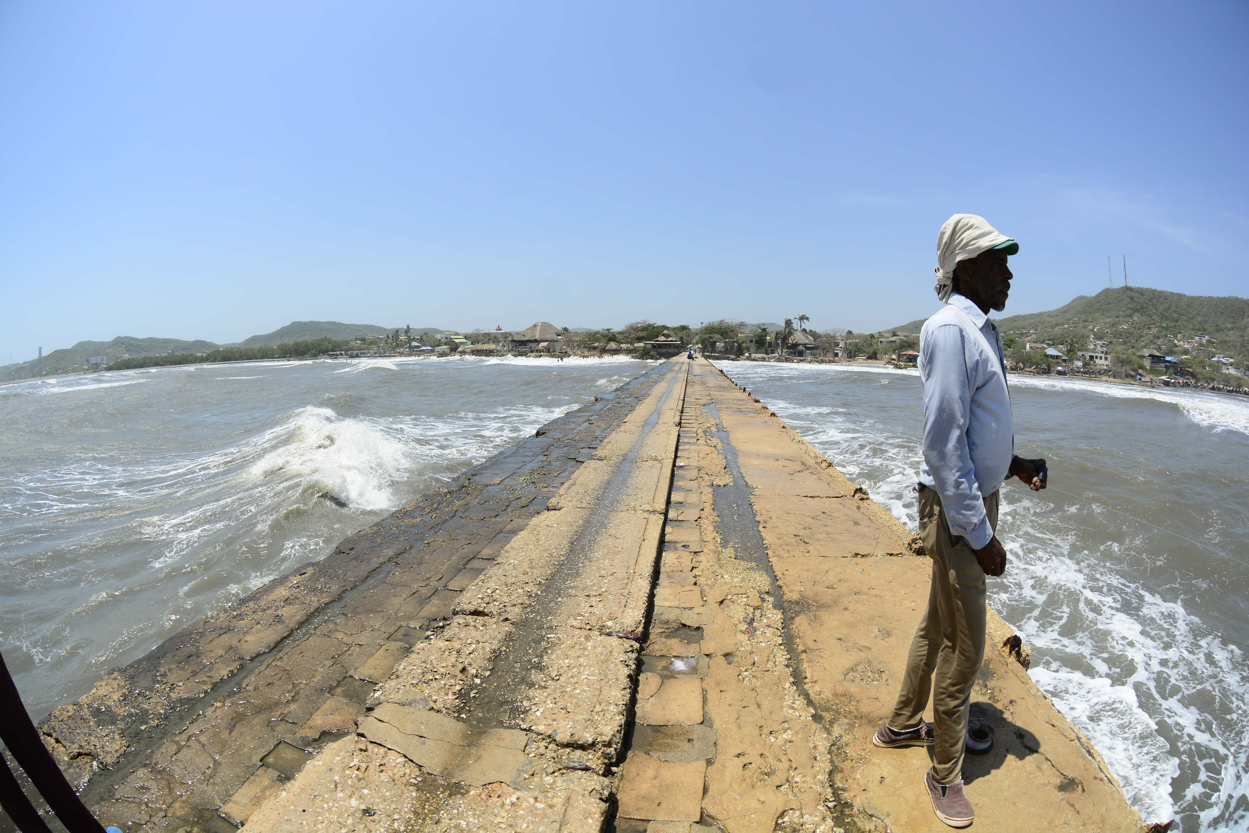 La erosión se tragó todo hasta los bordes. Ahora la sal embravecida se estrella directo contra los cimientos de la calle de restaurantes que desemboca en el muelle. Donde Ángel tiene su negocio. No conoce a Núñez, pero está de acuerdo en algo que también mencionó, alejado de utopías y promesas de remodelación total: se necesita rehabilitar, tan siquiera, los 200 metros de la entrada al monumento en ruinas. Que se haga realidad, al menos, el último proyecto anunciado. Lo demás poco importa. Le basta con que los visitantes tengan un lugar para pasear. Antes caminaban 1.300 metros y volvían con hambre. Ahora vienen, dan la vuelta y se despiden. Así, cada vez son menos los que caen en su atarraya de bandejas de mojarra con patacón a $15.000.