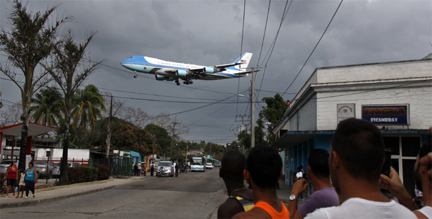 Ante el repliegue de la Guerra Fría, lo que hubo fue un frente frío. En días recientes el sol había golpeado sin tregua, pero los meteorólogos pronosticaron la llegada del fenómeno; desde tempranas horas se materializó en una llovizna que fue in crescendo. Obama fue recibido por el canciller. Muchos se quedaron preguntando por Raúl Castro, pero su encuentro oficial está programado para otro momento, el lunes. Aterrizó a las 3:07 de la tarde para los colombianos, las 4:07 para los cubanos. Pero su visita causó traumatismos desde la mañana.