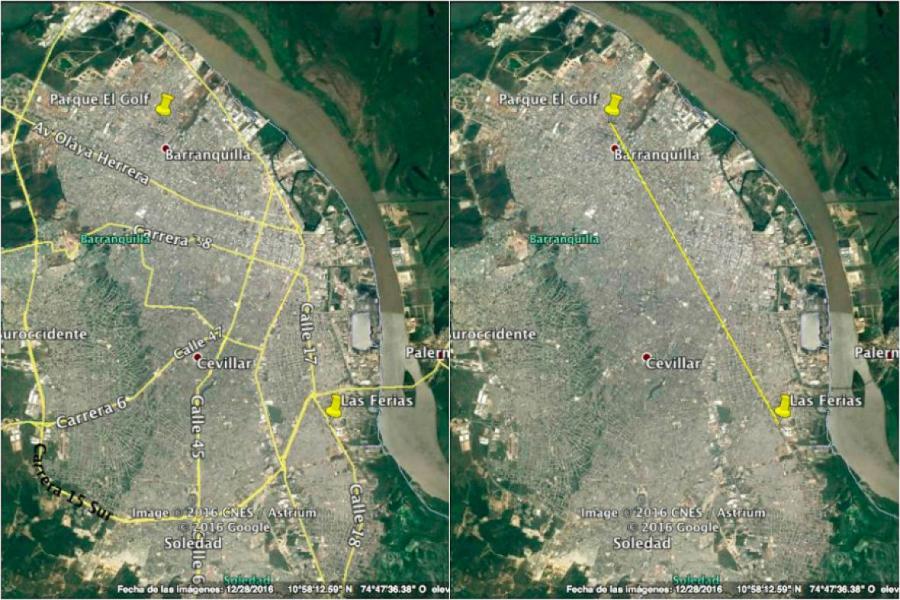 Distancia que recorre Miguel para llegar al parque El Golf desde el barrio Las Ferias.
