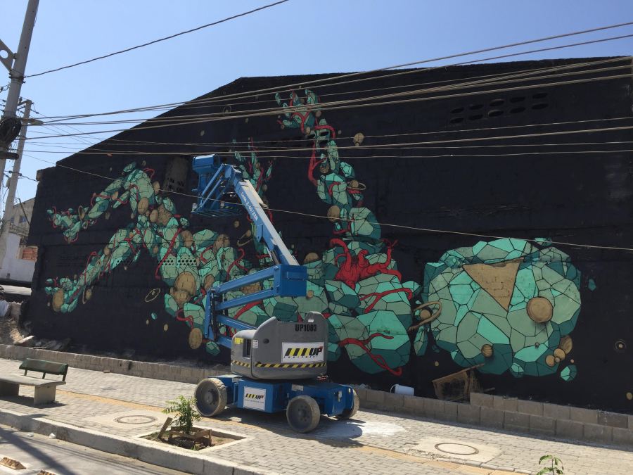 Aspecto del mural pintado por los artistas provenientes de la isla de Reunión, Francia. Está en la carrera 50 con calle 45, al pie de la Murillo.