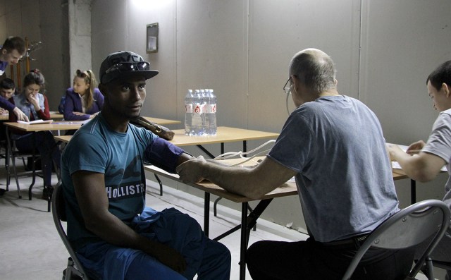 “Ahora que vi ese cinturón tengo es como adrenalina encima, mijo”, dice Déiner. Le dicen Chorote. Canta y dibuja ondas con las manos mientras escucha champeta por unos auriculares gigantescos en una bodega al lado de Hugo. Esperan su turno para los chequeos médicos.
